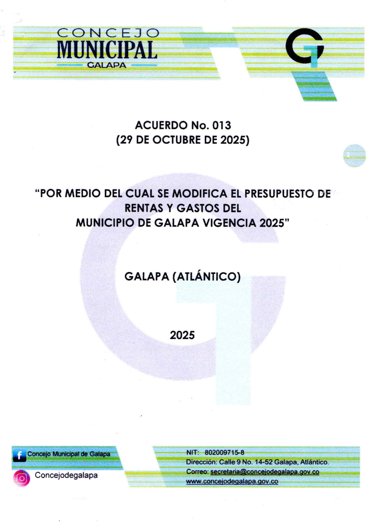 Acuerdos ACUERDO No. 013 DE 2025 ACUERDO No. 013 DE 2025 DESCARGAR Leer más » 29 de diciembre de 2025