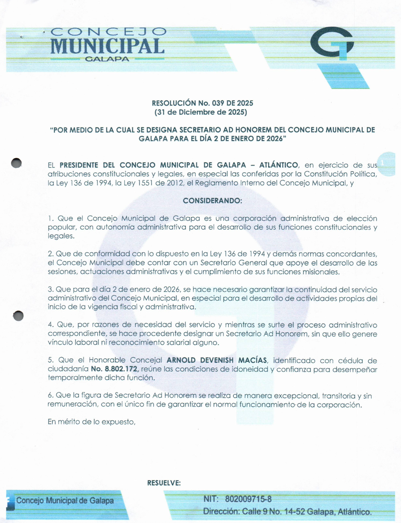 RESOLUCION 039