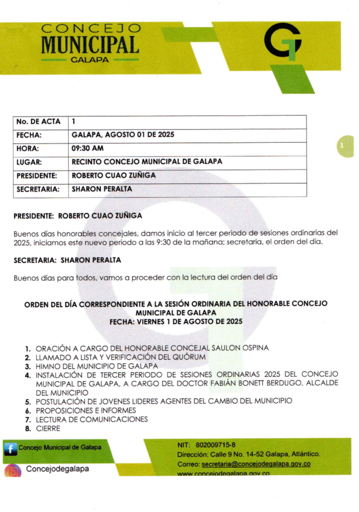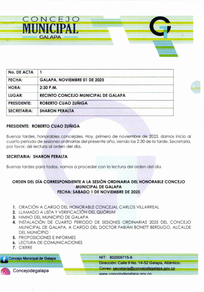 SESION ORDINARIA No. 1 NOVIEMBRE DESCARGAR