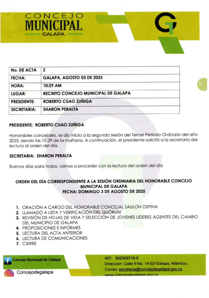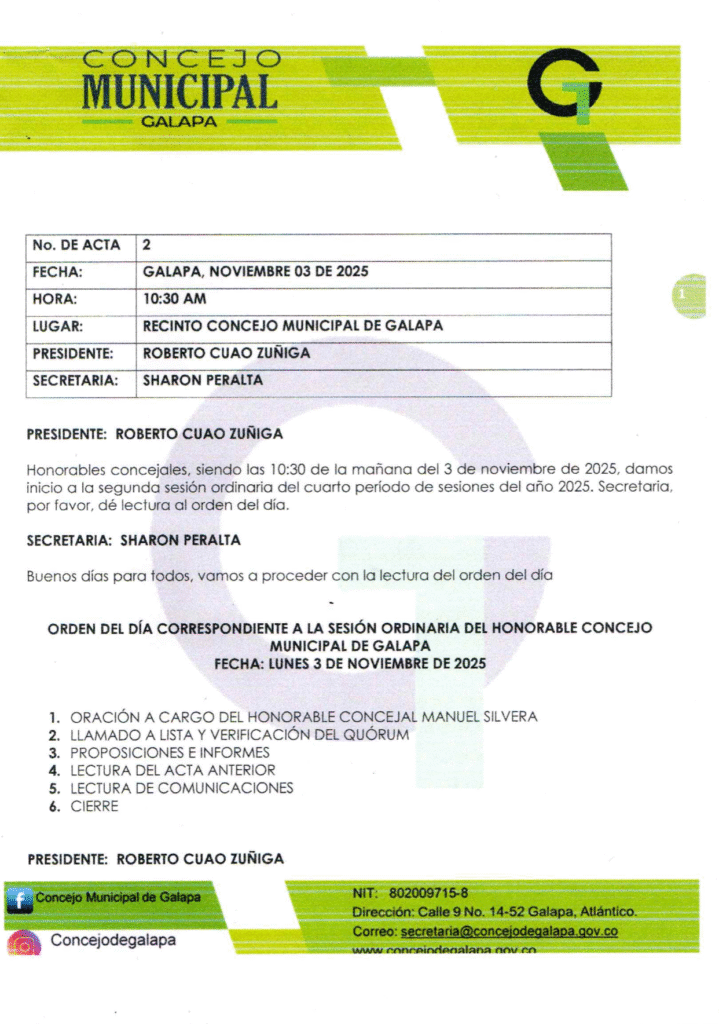 SESION ORDINARIA No. 2 NOVIEMBRE DESCARGAR