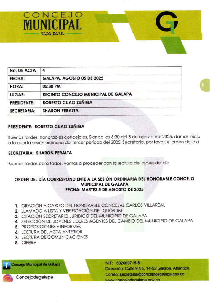 SESION ORDINARIA No. 4 NOVIEMBRE DESCARGAR
