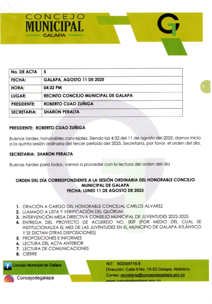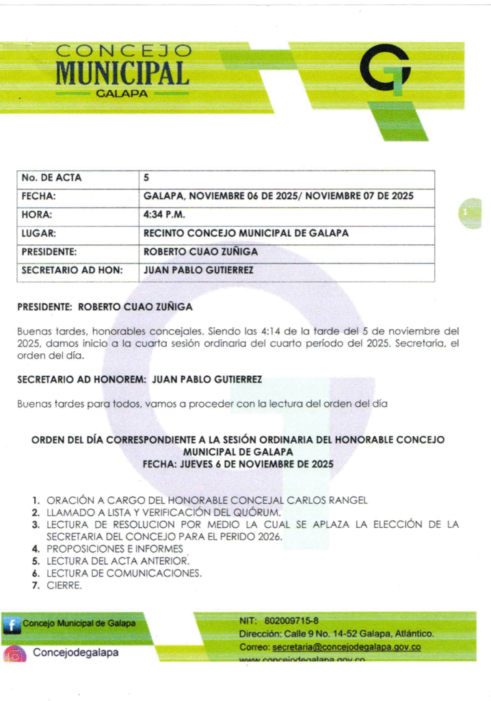 SESION ORDINARIA No. 5 NOVIEMBRE DESCARGAR