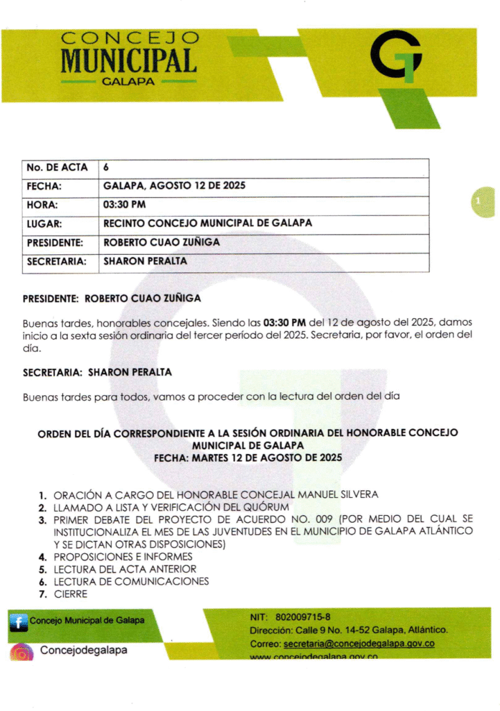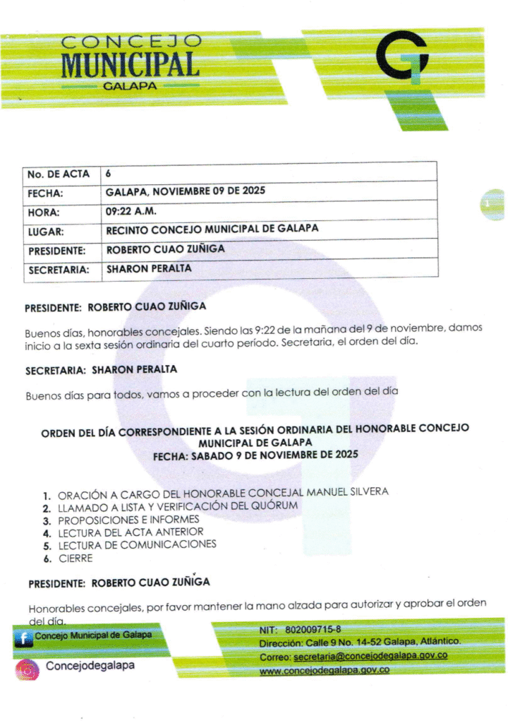 SESION ORDINARIA No. 6 NOVIEMBRE DESCARGAR