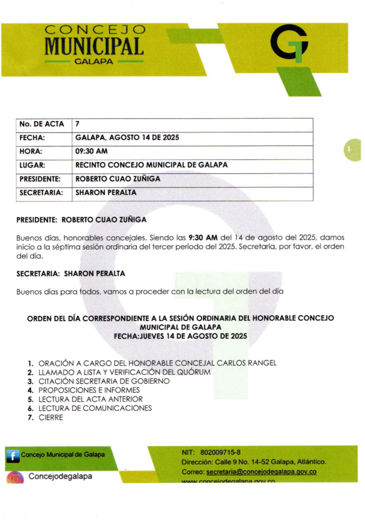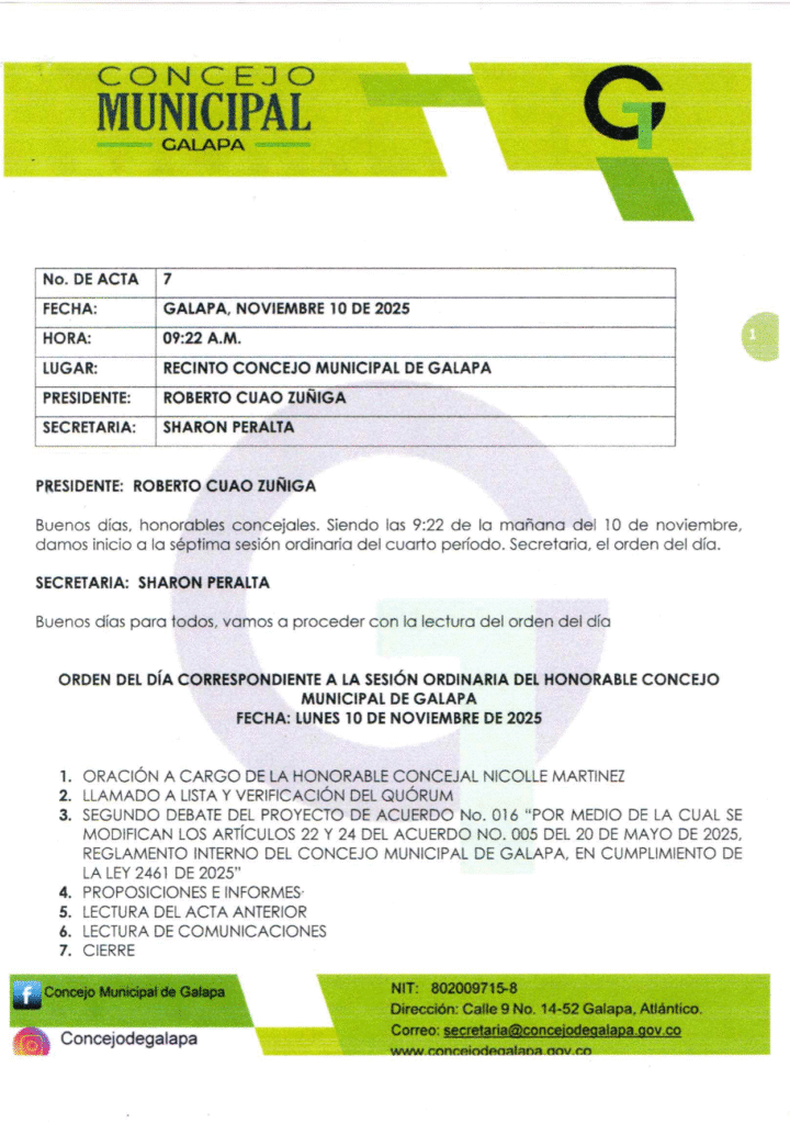 SESION ORDINARIA No. 7 NOVIEMBRE DESCARGAR