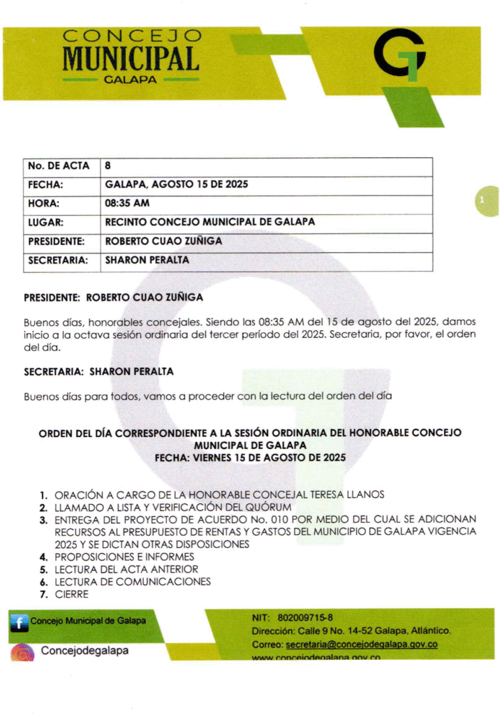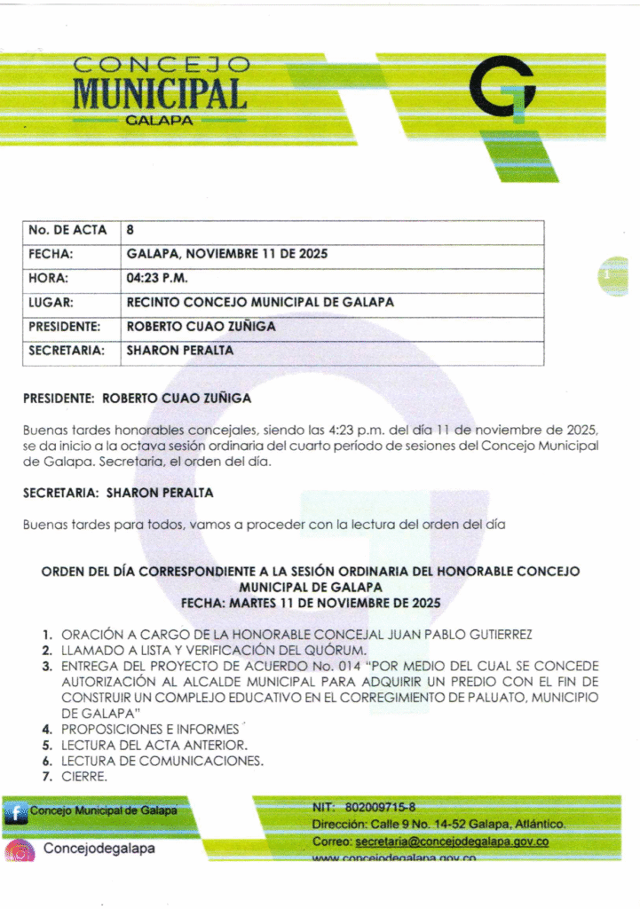 SESION ORDINARIA No. 8 NOVIEMBRE DESCARGAR