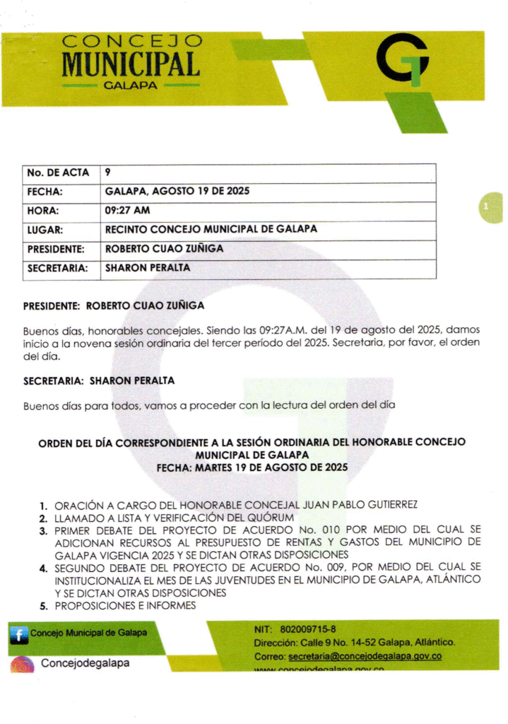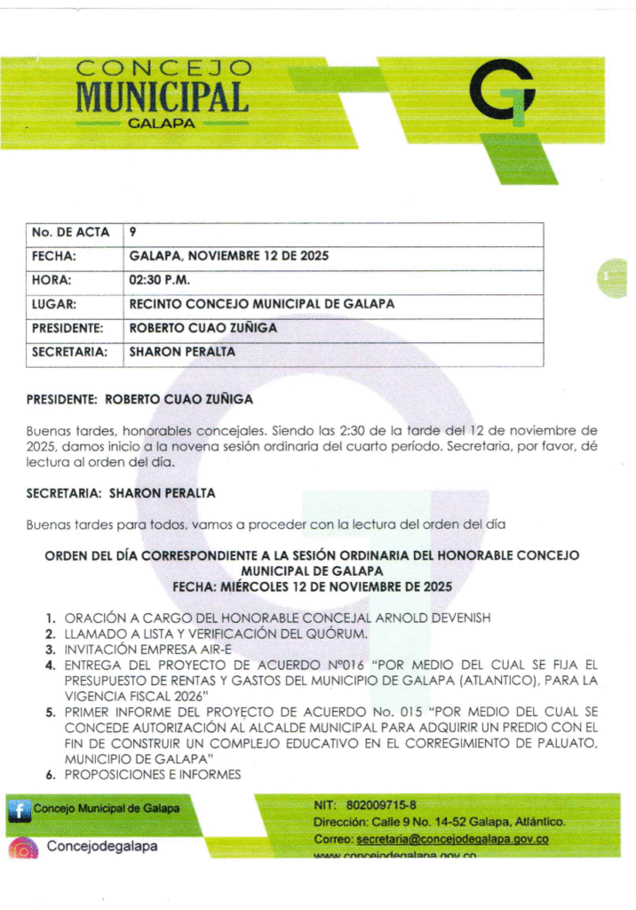 SESION ORDINARIA No. 9 NOVIEMBRE DESCARGAR