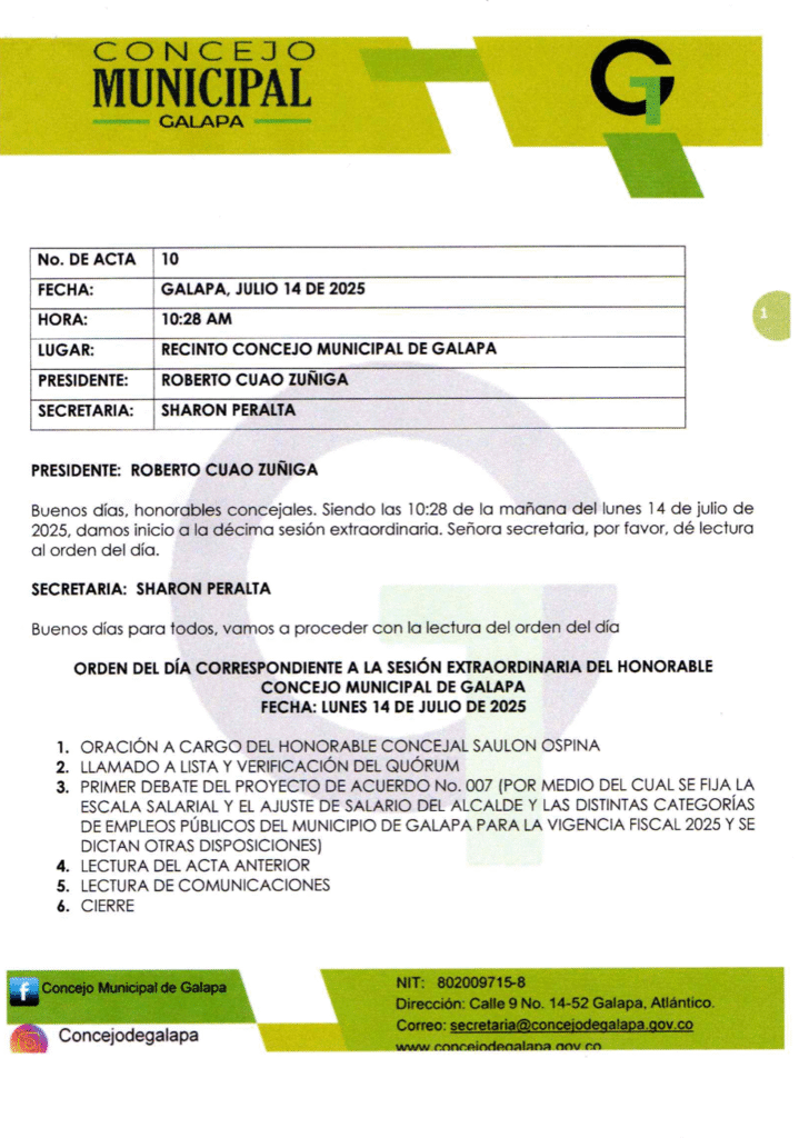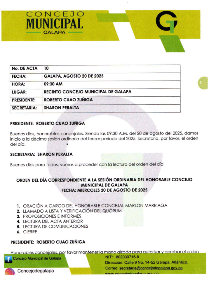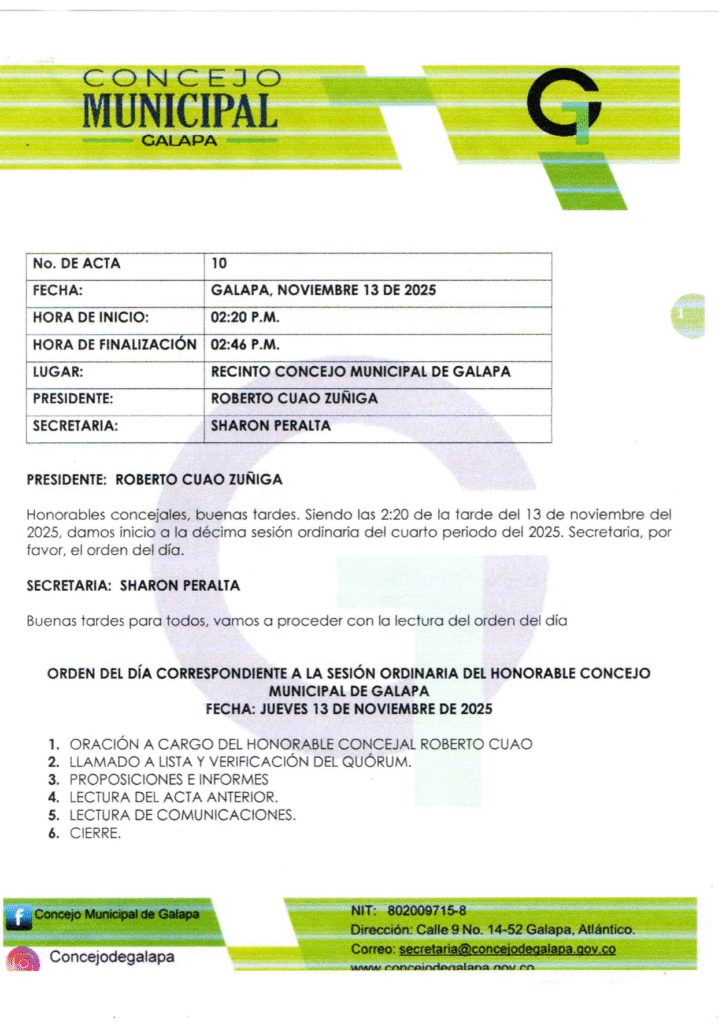 SESION ORDINARIA No. 10 NOVIEMBRE DESCARGAR