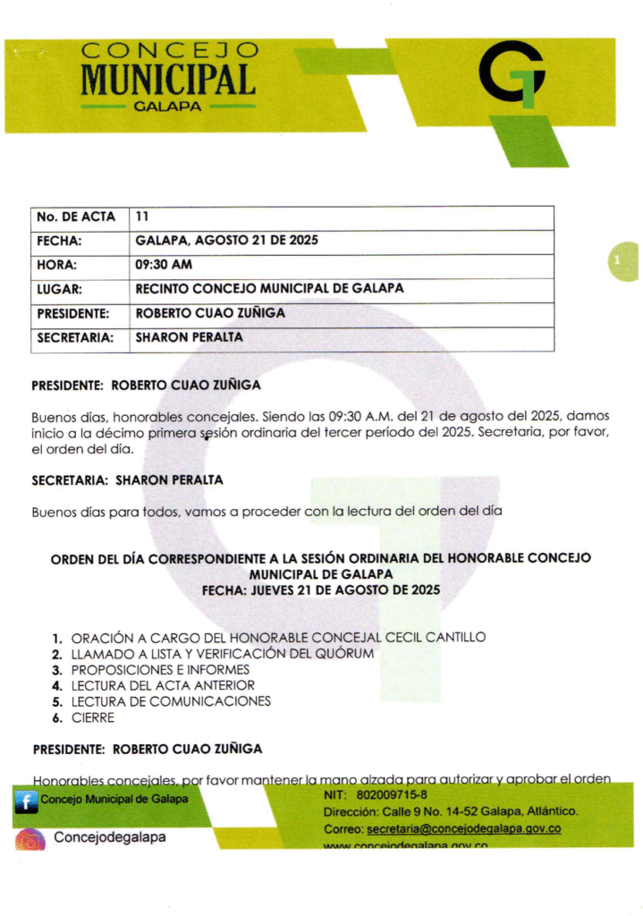 SESION ORDINARIA No. 11 NOVIEMBRE DESCARGAR