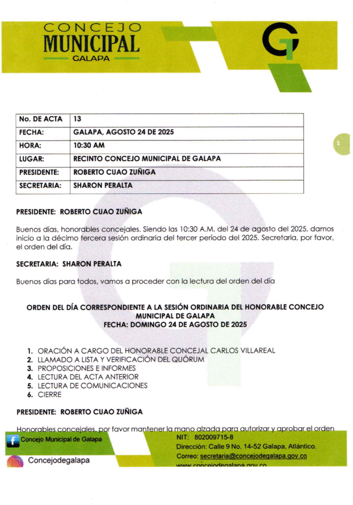 SESION ORDINARIA No. 13 NOVIEMBRE DESCARGAR