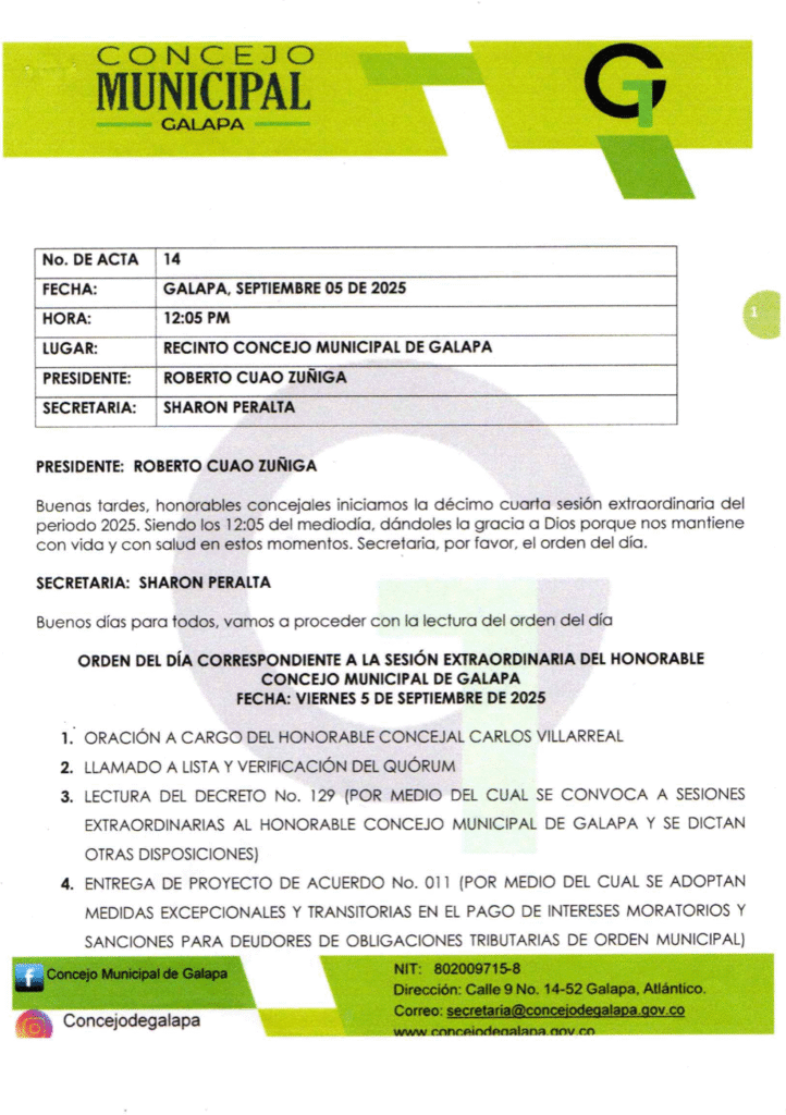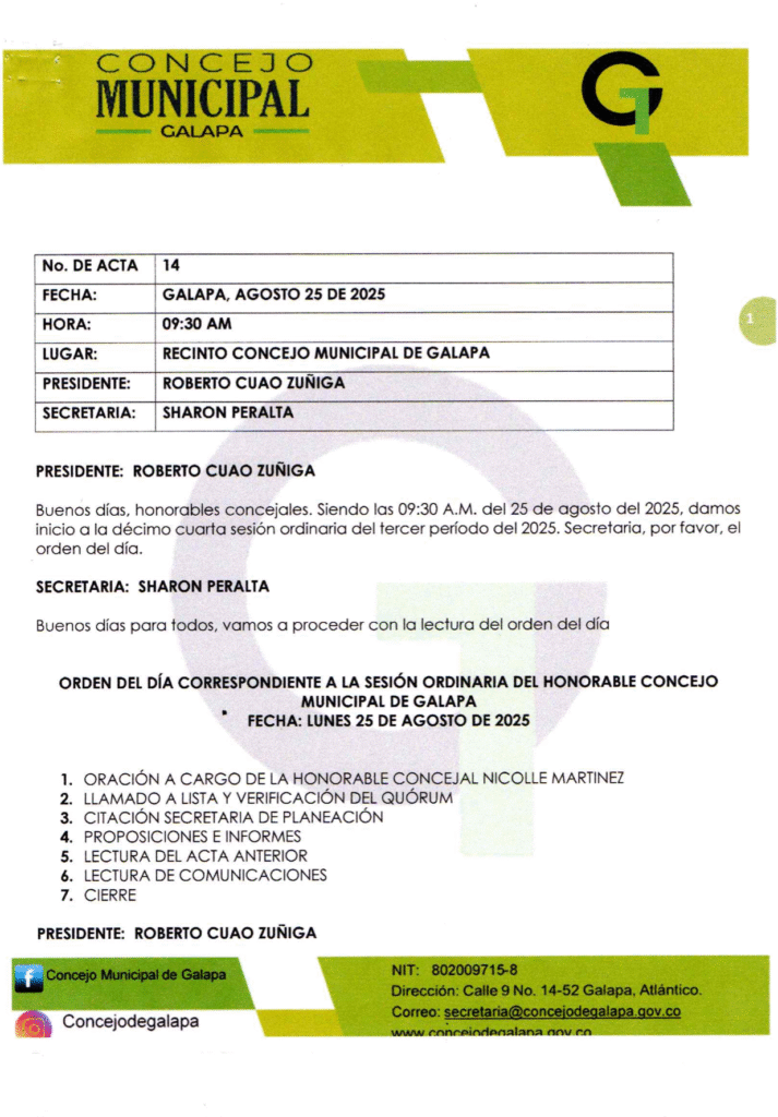 SESION ORDINARIA No. 14 NOVIEMBRE DESCARGAR