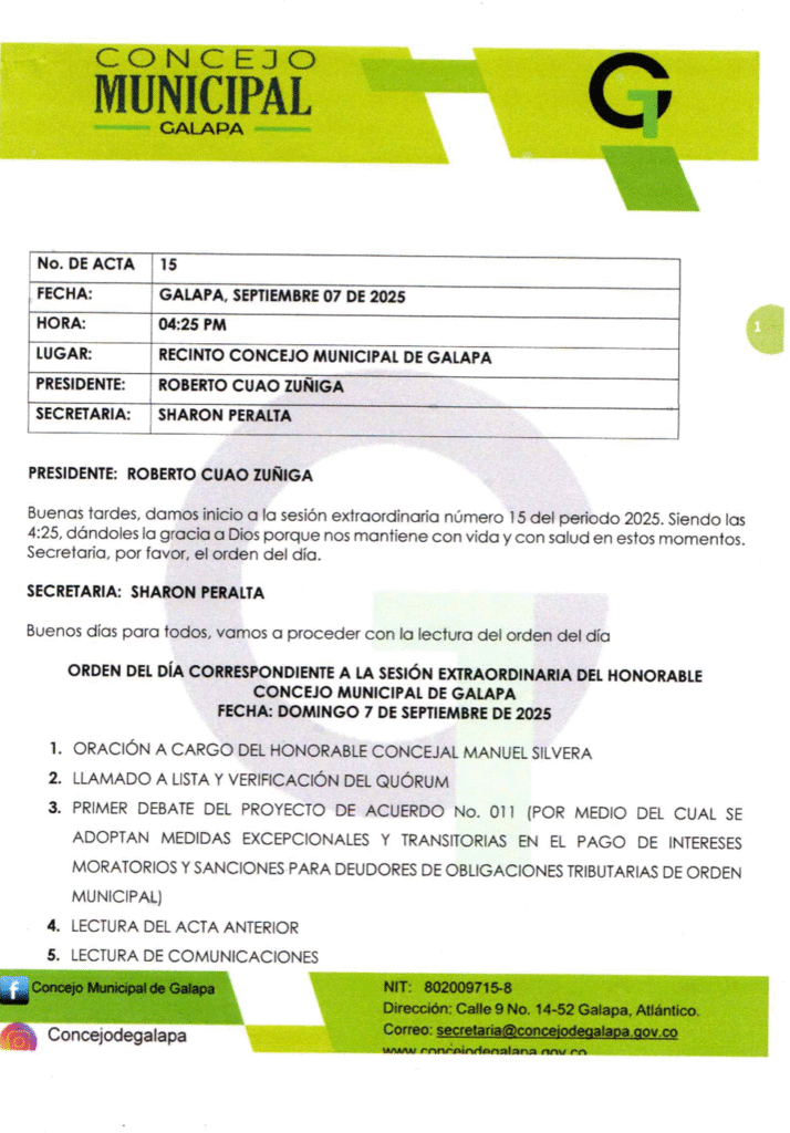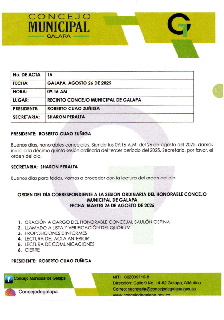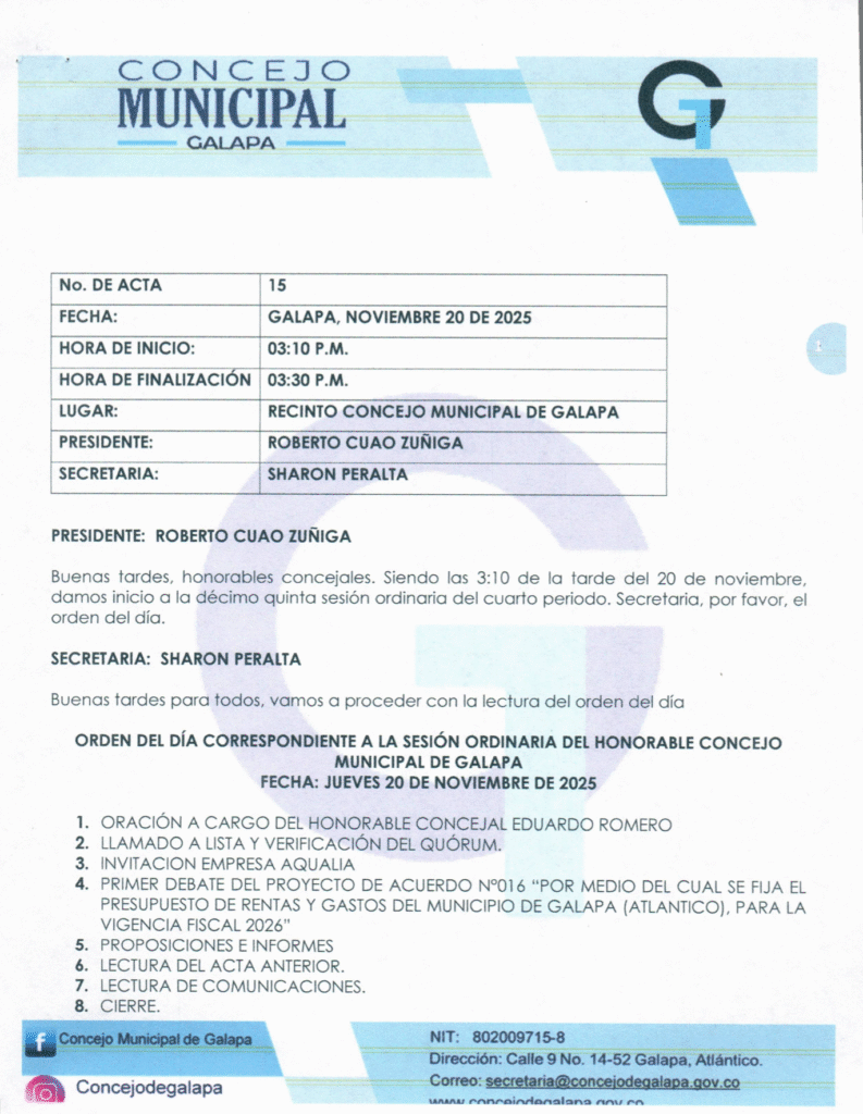 SESION ORDINARIA No. 15 NOVIEMBRE DESCARGAR