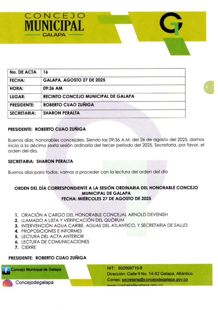 SESION ORDINARIA No. 16 NOVIEMBRE DESCARGAR