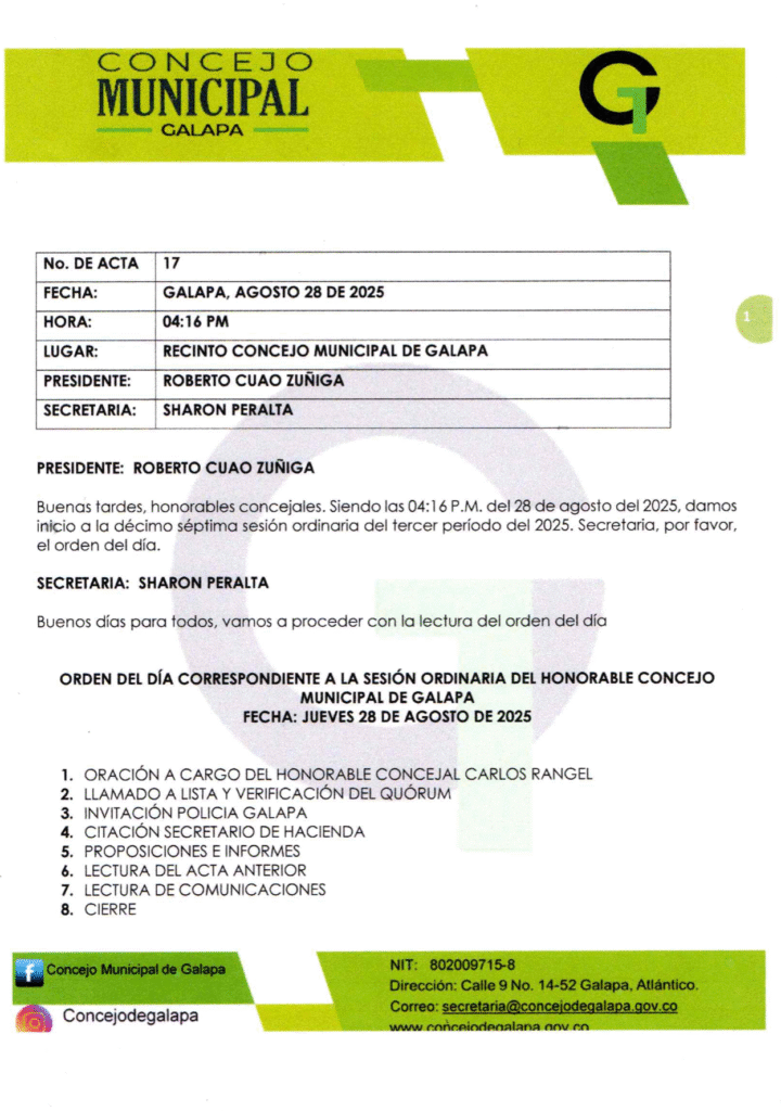 SESION ORDINARIA No. 17 NOVIEMBRE DESCARGAR