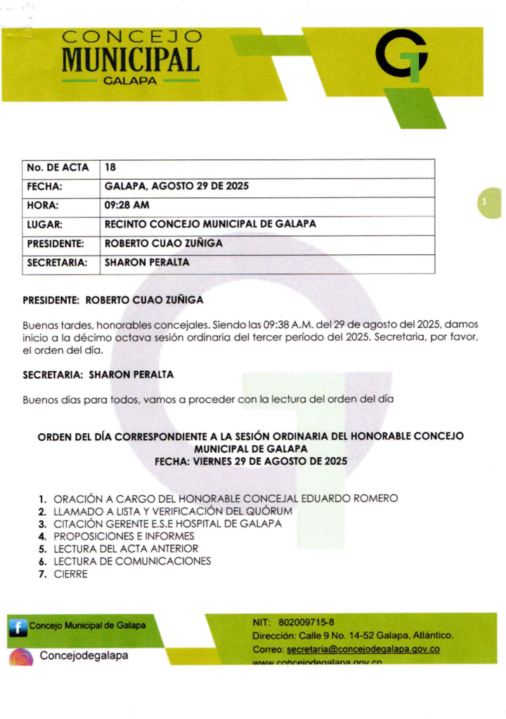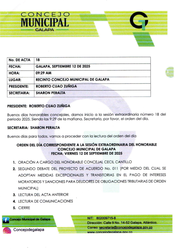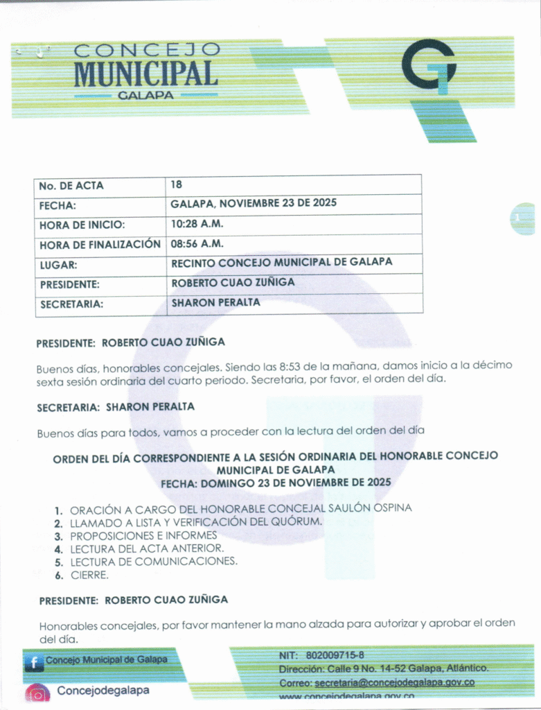 SESION ORDINARIA No. 18 NOVIEMBRE DESCARGAR
