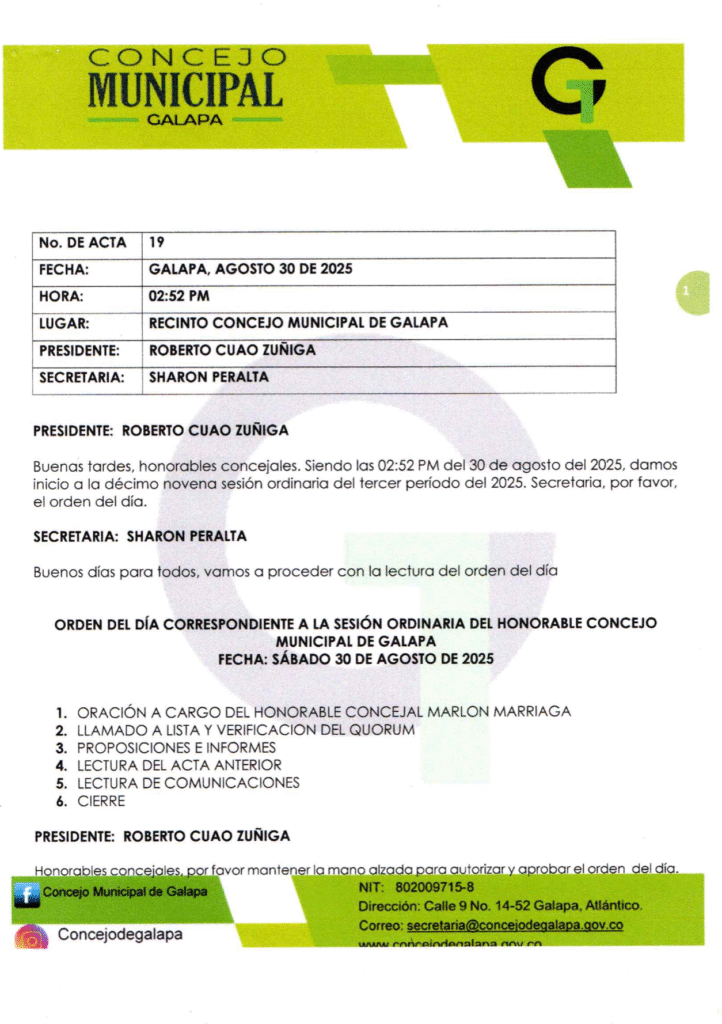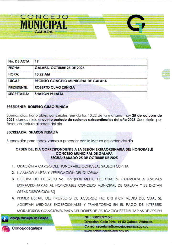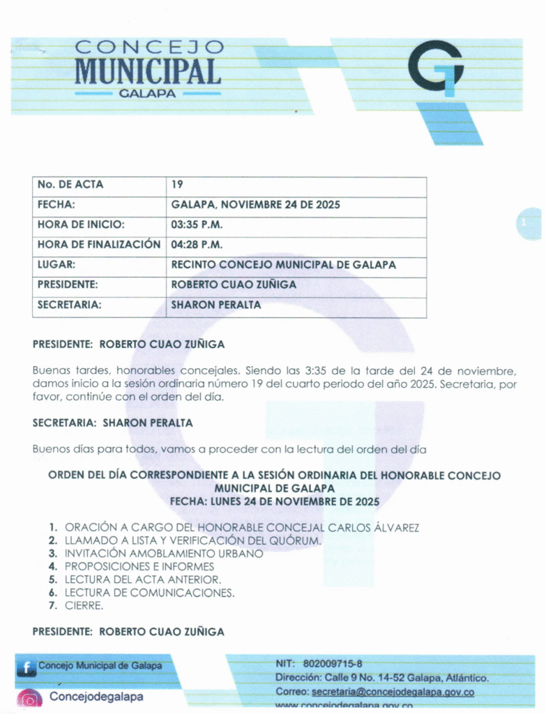 SESION ORDINARIA No. 19 NOVIEMBRE DESCARGAR