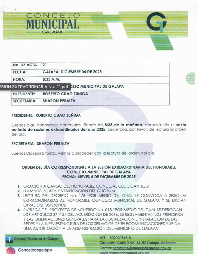 SESION EXTRAORDINARIA No. 21 DESCARGAR