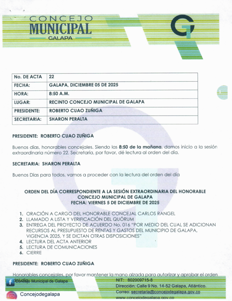SESION EXTRAORDINARIA No. 22 DESCARGAR