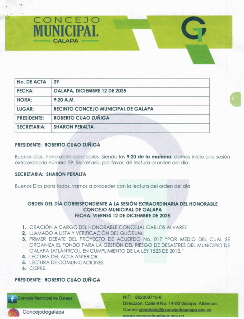 SESION ORDINARIA No. 25 NOVIEMBRE DESCARGAR