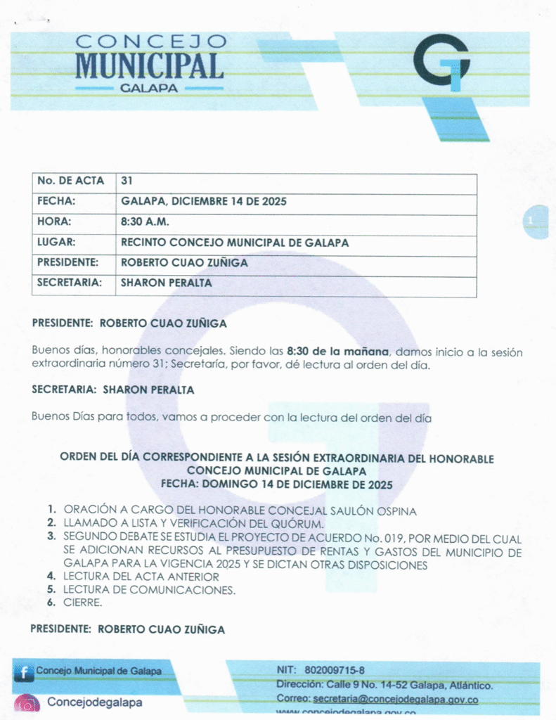 SESION EXTRAORDINARIA No. 31 DESCARGAR