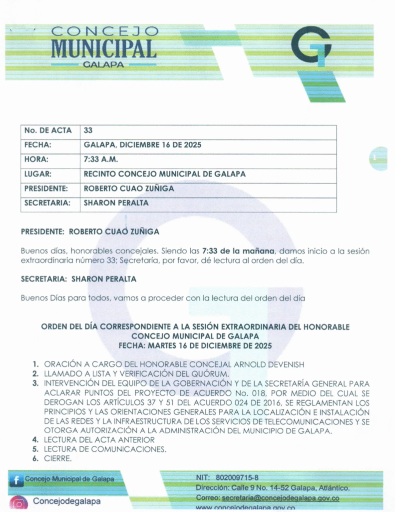 SESION EXTRAORDINARIA No. 33 DESCARGAR