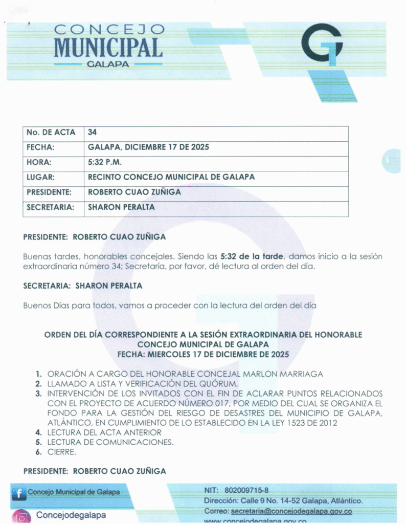 SESION EXTRAORDINARIA No. 34 DESCARGAR