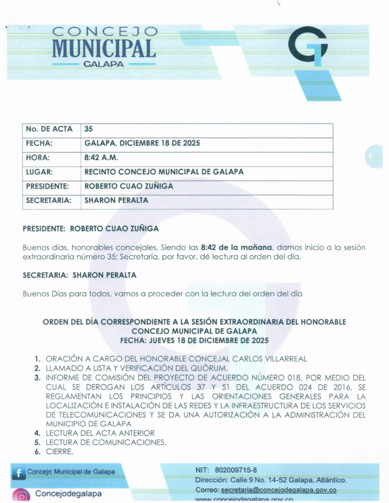 SESION EXTRAORDINARIA No. 35 DESCARGAR