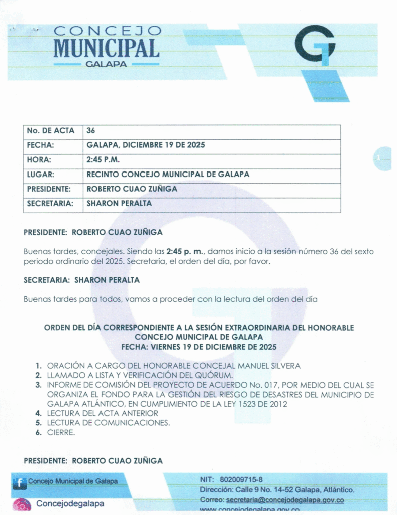 SESION EXTRAORDINARIA No. 36 DESCARGAR