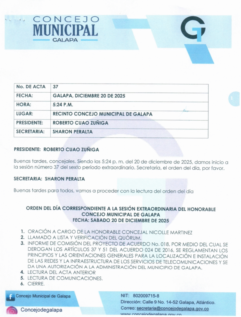 SESION EXTRAORDINARIA No. 37 DESCARGAR