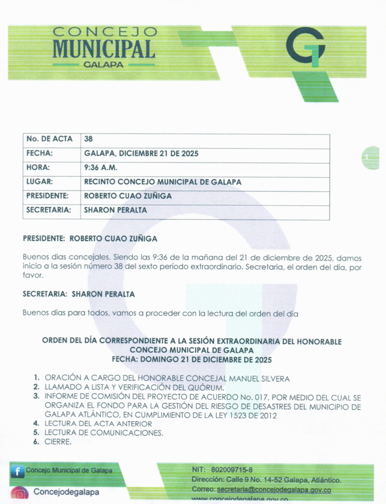 SESION EXTRAORDINARIA No. 38 DESCARGAR