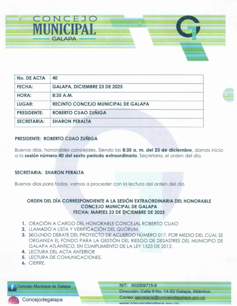 SESION EXTRAORDINARIA No. 40 DESCARGAR