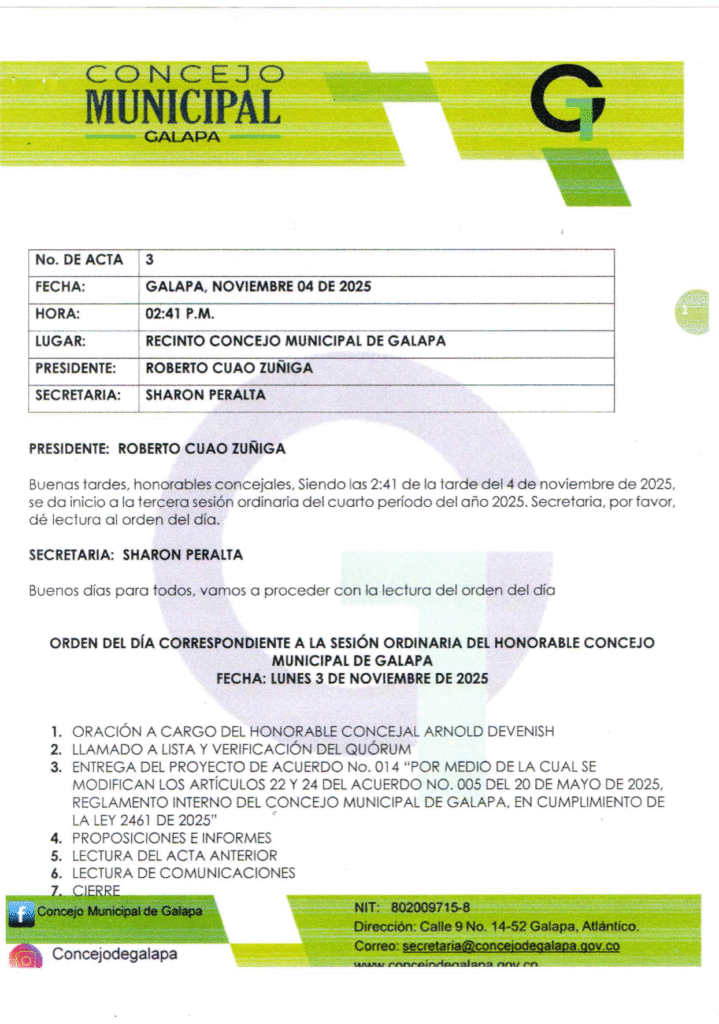 SESION ORDINARIA No. 3 NOVIEMBRE DESCARGAR