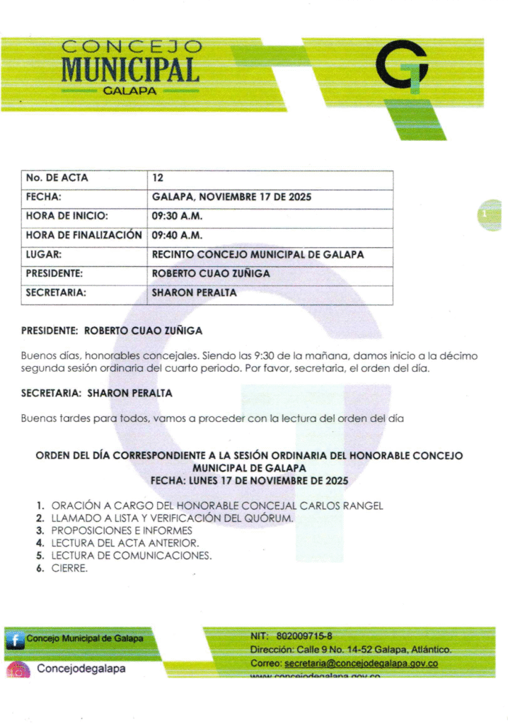 SESION ORDINARIA No. 12 NOVIEMBRE DESCARGAR