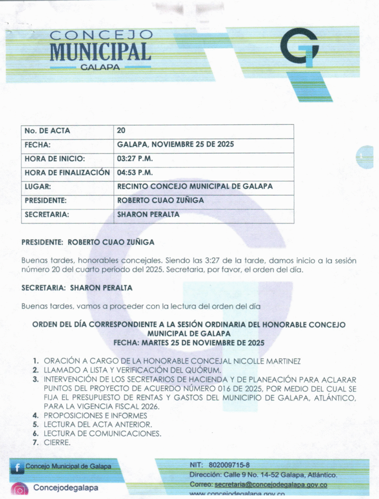 SESION ORDINARIA No. 20 NOVIEMBRE DESCARGAR