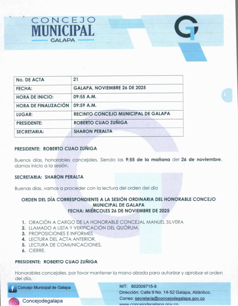 SESION ORDINARIA No. 21 NOVIEMBRE DESCARGAR