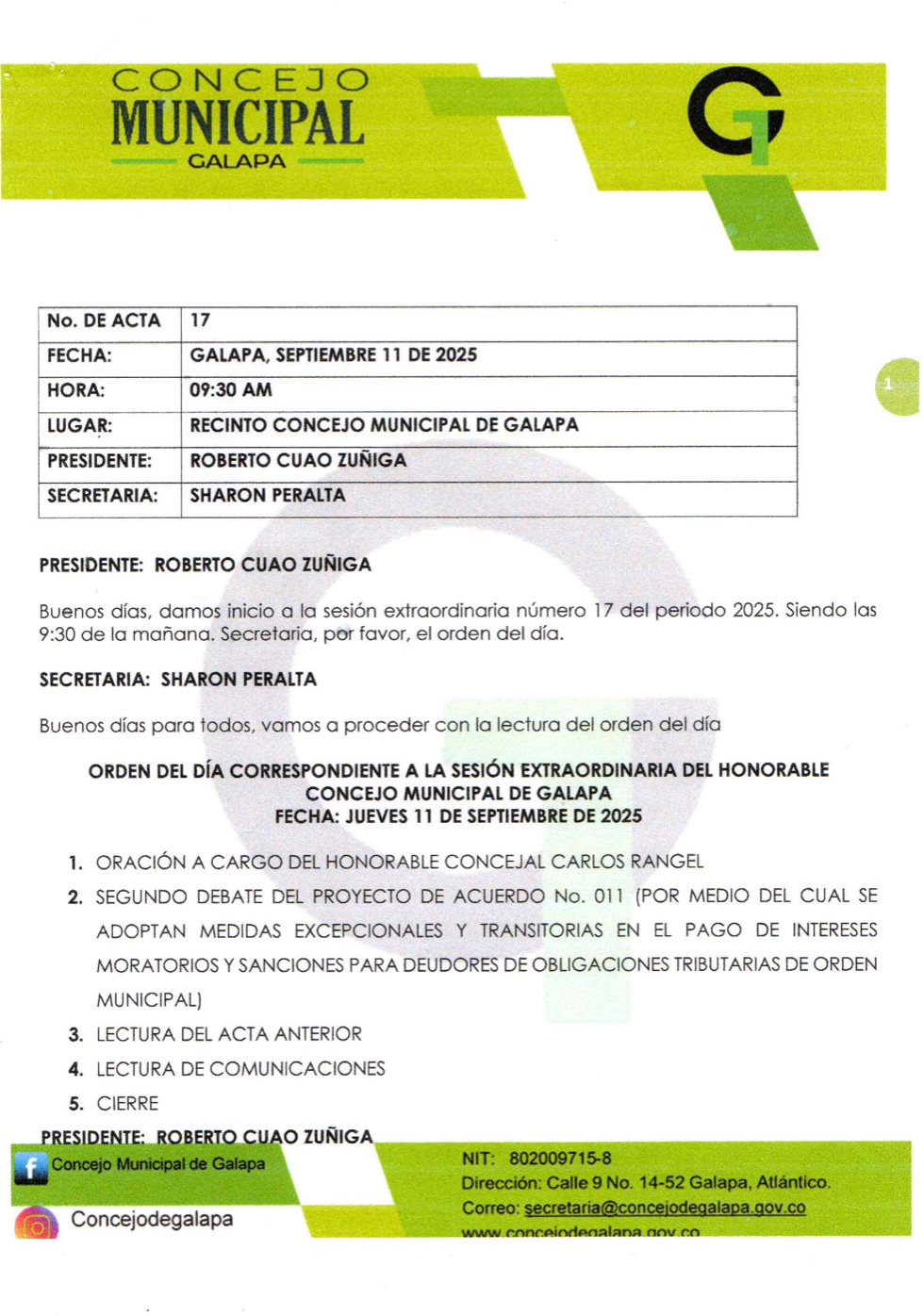 Actas SESION EXTRAORDINARIA 17 SESION EXTRAORDINARIA 17 DESCARGAR Leer más » 30 de septiembre de 2025