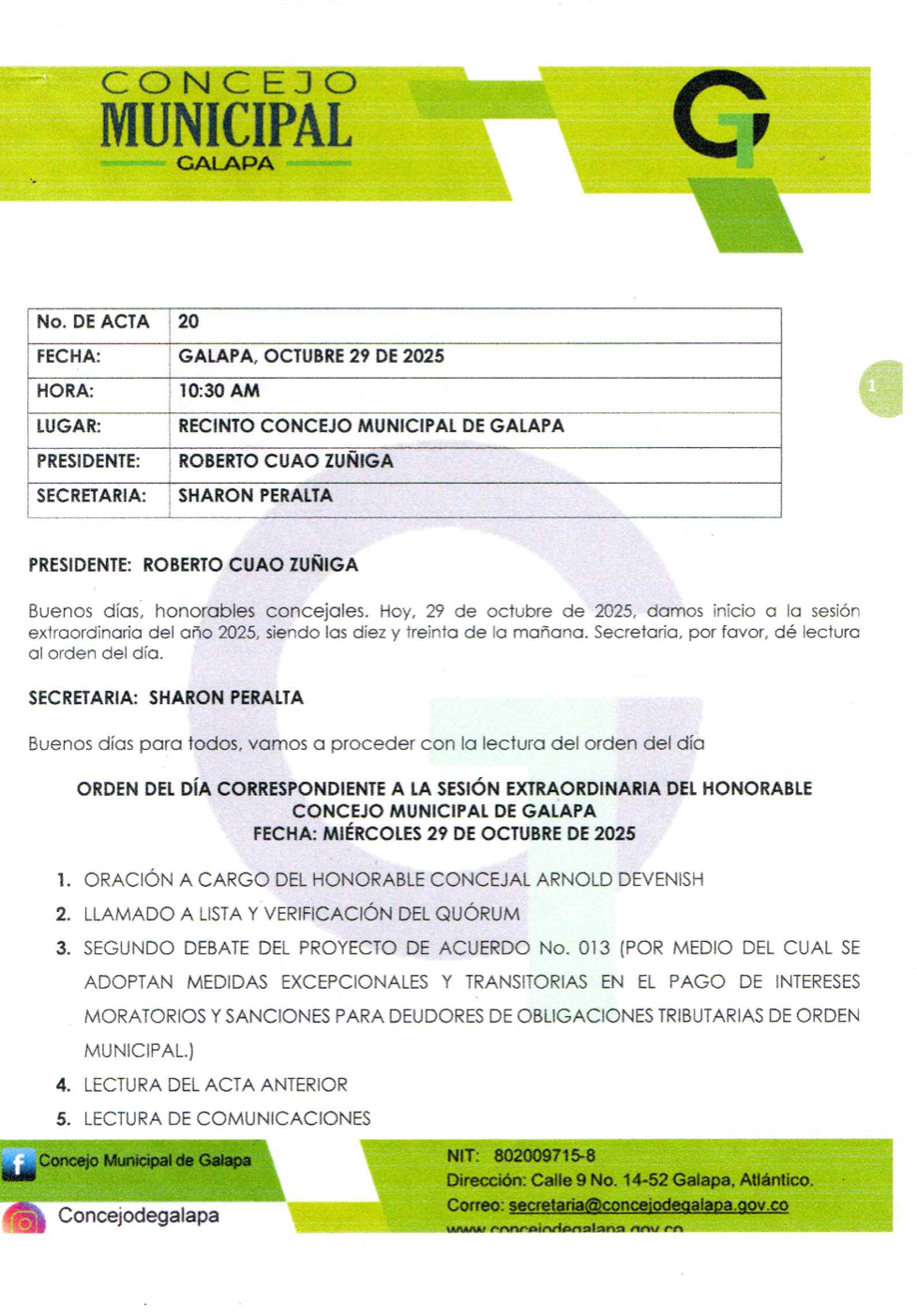 Actas SESION ORDINARIA No. 2 NOVIEMBRE SESION ORDINARIA No. 2 NOVIEMBRE DESCARGAR Leer más » 30 de noviembre de 2025