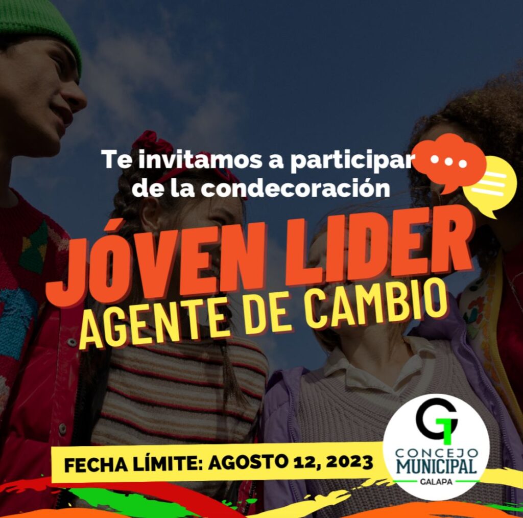 El Concejo Municipal ,informa a toda la comunidad de Galapa que se encuentra abierta la convocatoria Joven Líder Agente de Cambio.