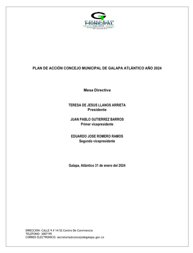 PLAN DE ACCIÓN CONCEJO DE GALAPA