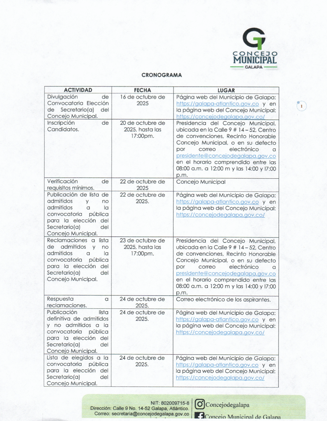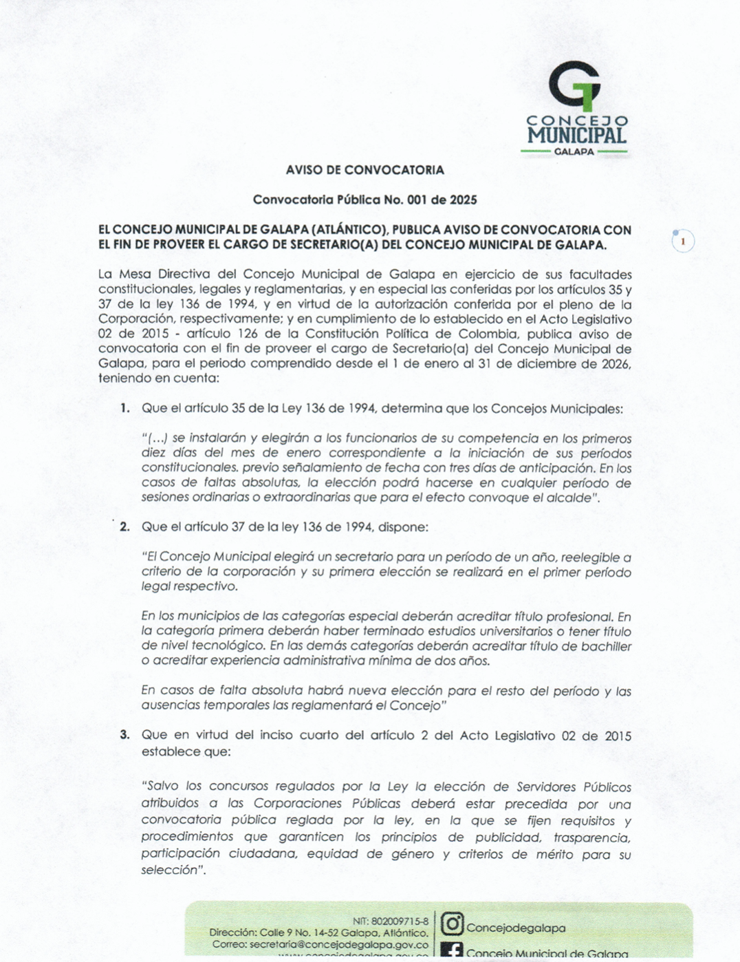 Aviso de Convocatoria [Convocatoria Pública No. 001-2025] DESCARGAR