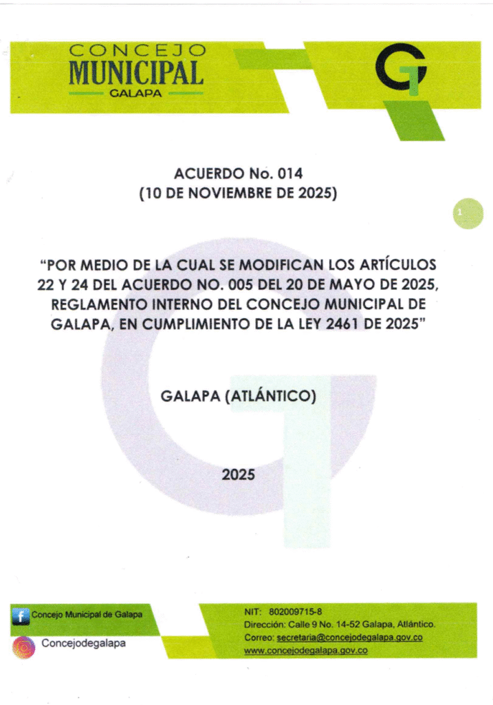 ACUERDO No. 005 DE 2025 – REGLAMENTO INTERNO DEL CONCEJO MUNICIPAL DE GALAPA DESCARGAR