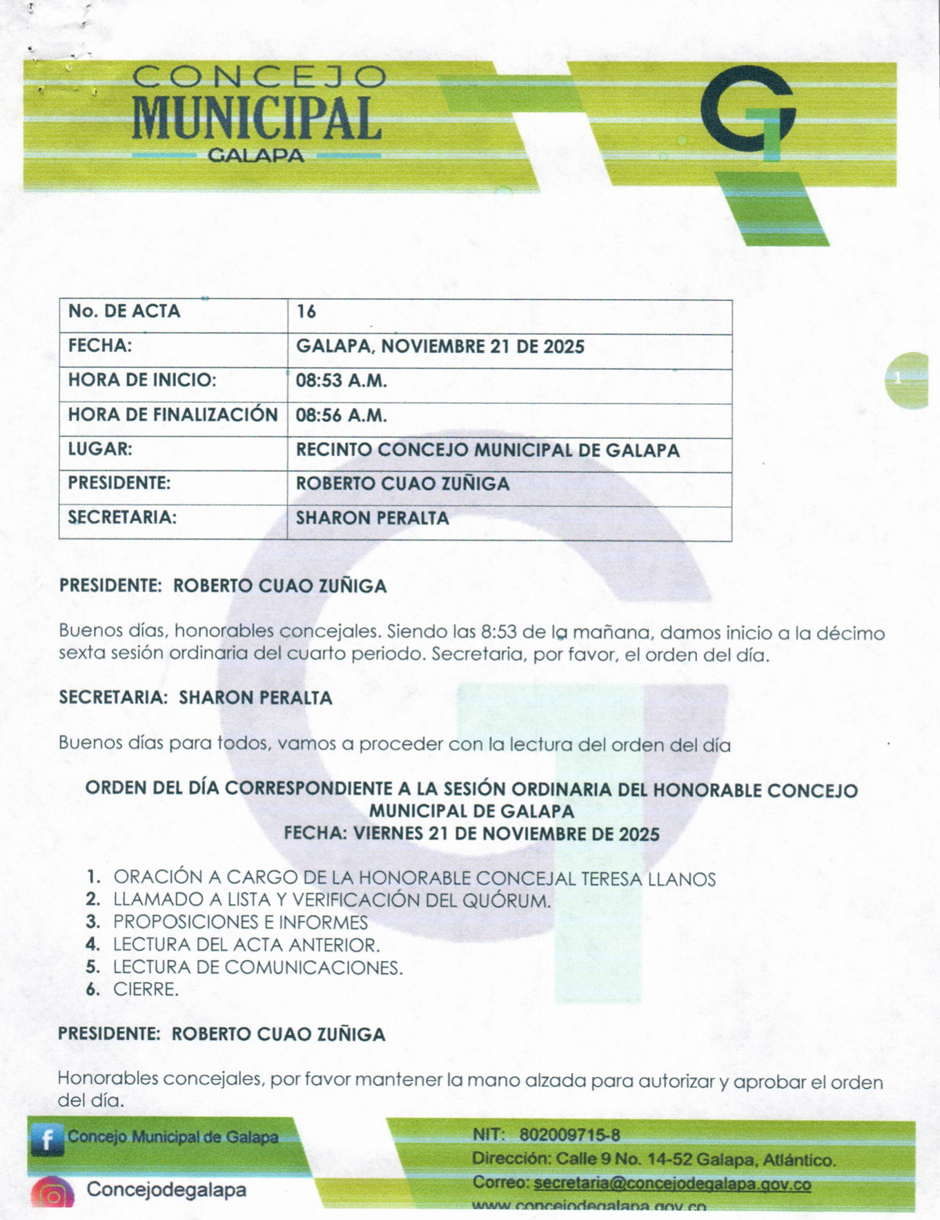 Actas SESION ORDINARIA No. 16 NOVIEMBRE SESION ORDINARIA No. 16 NOVIEMBRE DESCARGAR Leer más » 30 de noviembre de 2025