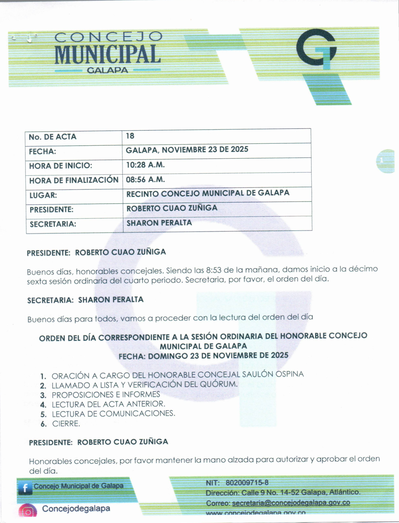 Actas SESION ORDINARIA No. 18 NOVIEMBRE SESION ORDINARIA No. 18 NOVIEMBRE DESCARGAR Leer más » 30 de noviembre de 2025