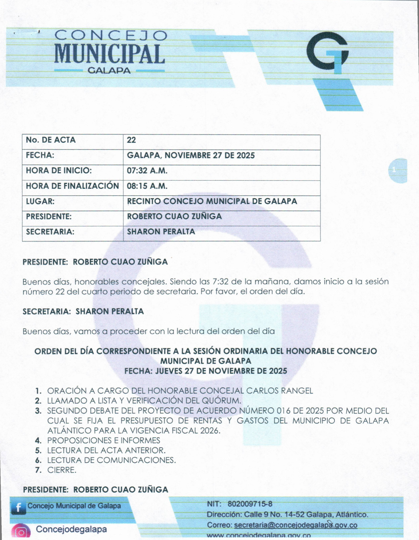 Actas SESION ORDINARIA No. 25 NOVIEMBRE SESION ORDINARIA No. 25 NOVIEMBRE DESCARGAR Leer más » 30 de diciembre de 2025