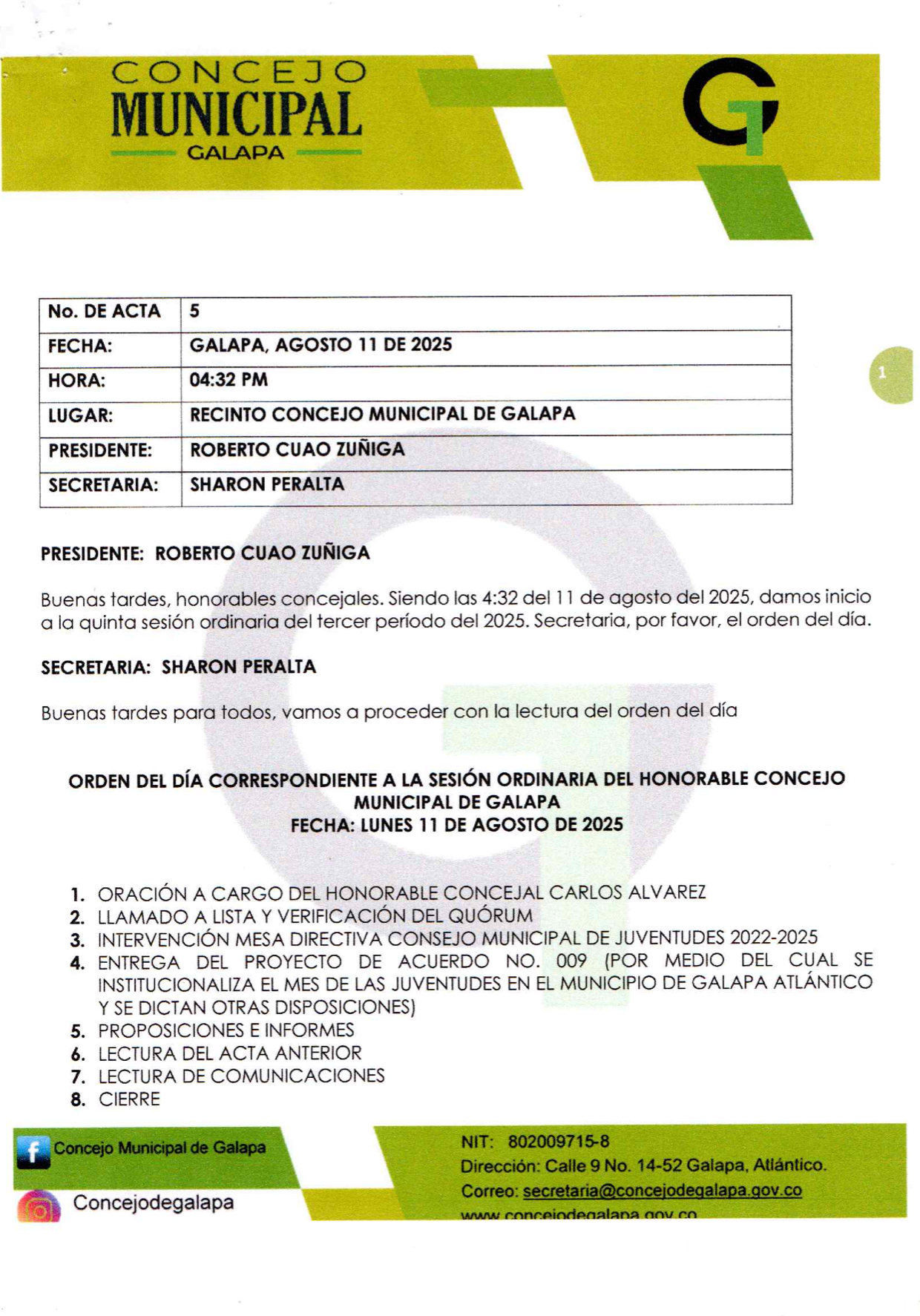 SESION ORDINARIA 5 DESCARGAR